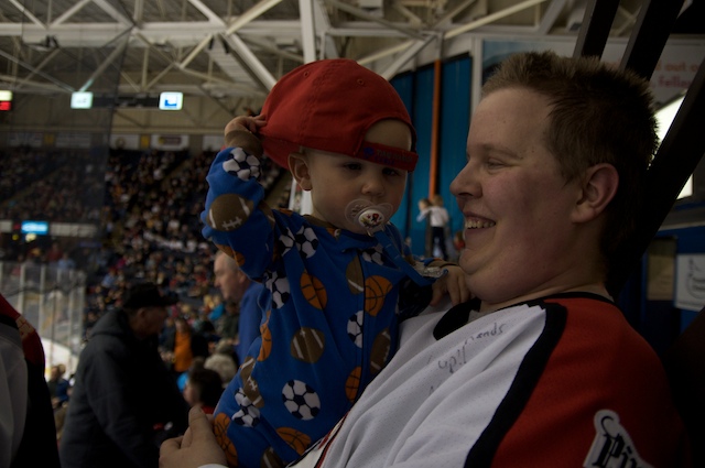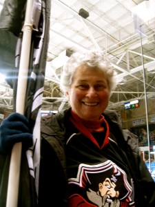 Andrew grew up in Minnesota where, “you’re basically born on skates.” He played hockey a little himself, but “was never very good at it.” Like many minor league hockey fans, he’s formed a community at the arena. Cynthia Reed-Workinan, a grandmother with short, silver hair, sits two seats over from Andrew in Section T. Cynthia explains, “When I wanted a ticket and they sold me one for this area, they thought I’d probably never come back but I just loved the amount of energy that was expended down here. So I’m still here three years later.”