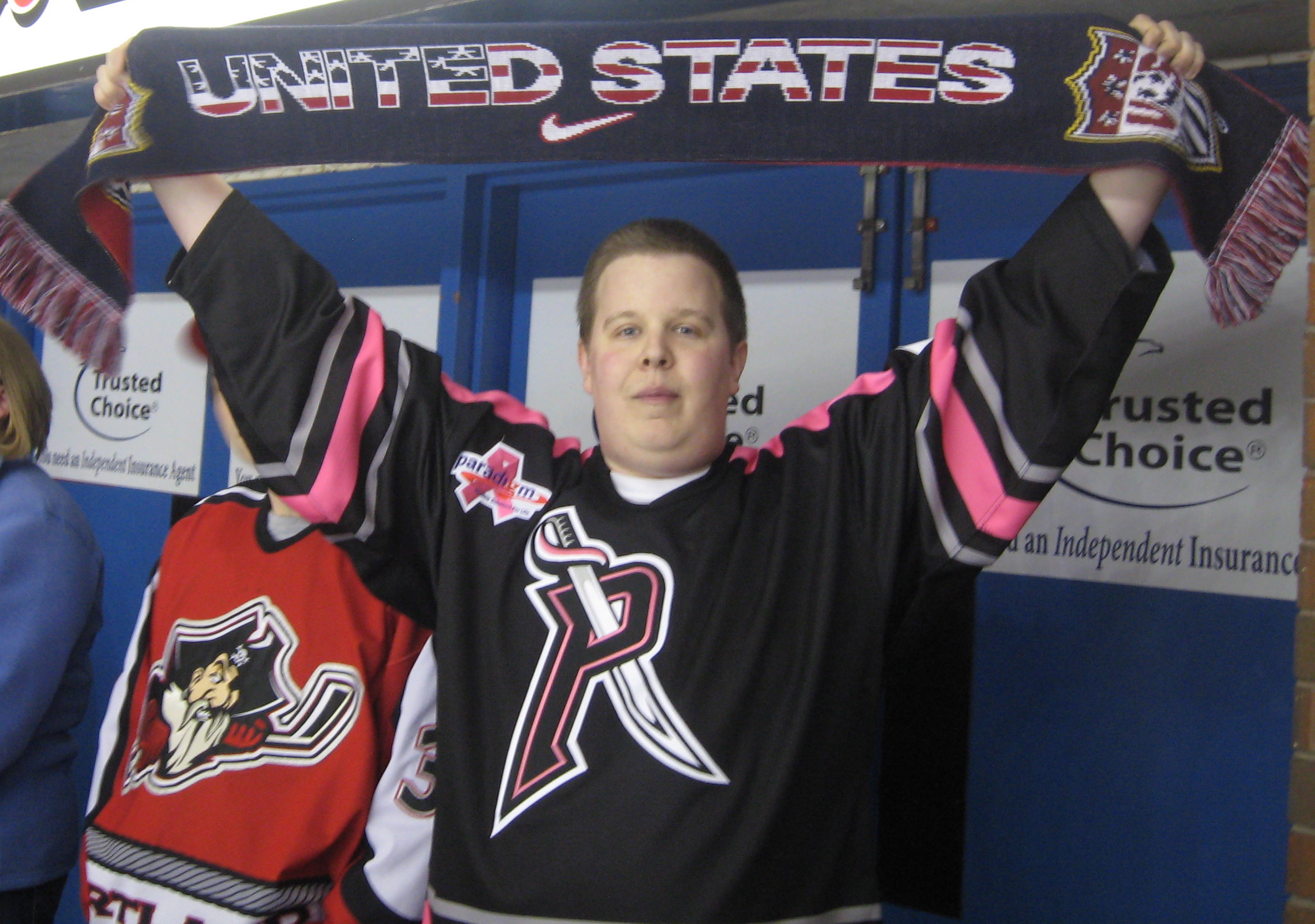 “We come here together; we go on road trips together; we hang out together. Like a dysfunctional family,” explains Andrew, the crew’s leader. He has a buzz cut, soft, blue eyes and, at this particular home game, wears a pink-trimmed Pirates’ jersey, indicative of breast cancer awareness, over his husky frame. By day, he works in security at Unum. By night, he’s fist-bumping fans and holding up his red Pirates’ scarf for the entire crowd to see. As head coach Kevin Dineen returns to the ice following intermission, Andrew leads the crowd in a cheer: “We’re all a part of Kevin’s army / We’re all out to win the league / And we’ll really shake ‘em up / When we win the Calder Cup / ‘Cause Portland’s the greatest hockey team!”